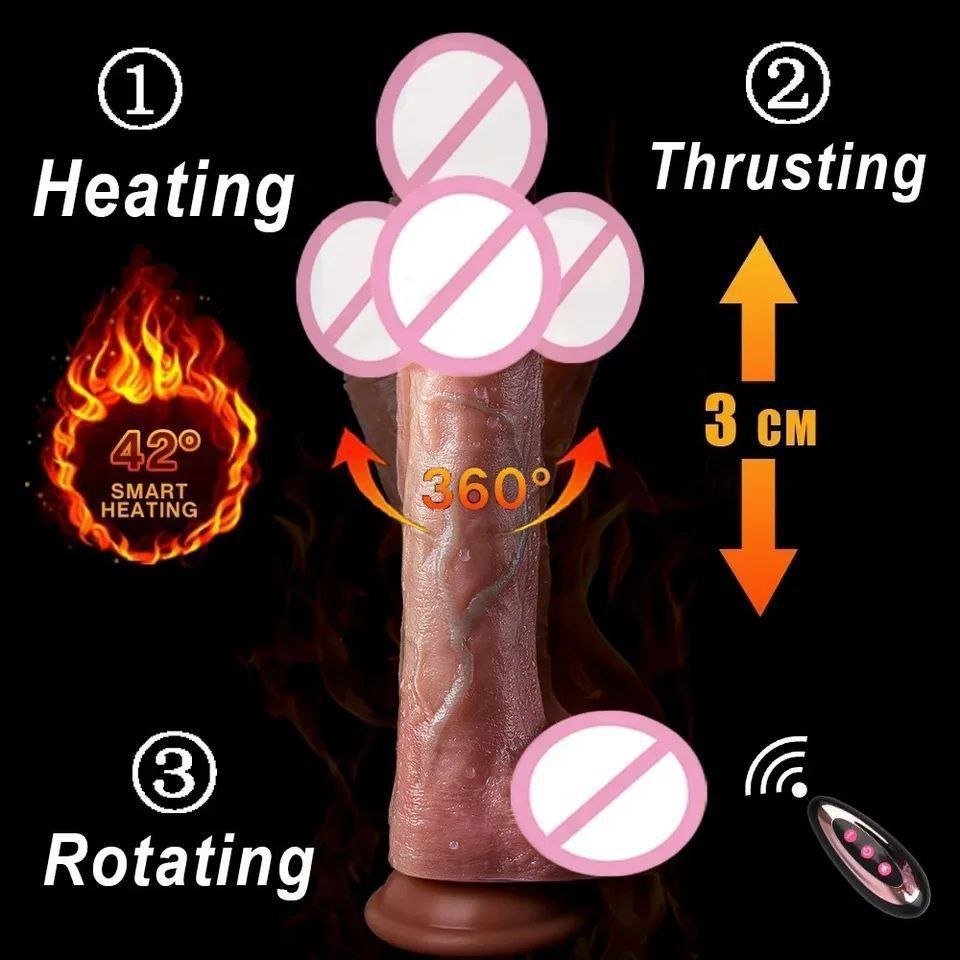 ✨ دیلدو ویبراتوری حرکتی چرخشی لاکچری | حرارت‌دار + تلسکوپی + کنترل از راه دور + چرخش ۳۶۰ درجه