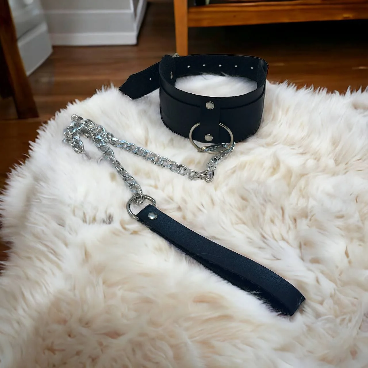 ✨ قلاده چرم پهن حرفه‌ای + زنجیر فلزی لوکس | ست کامل BDSM و پت‌پلی 🔥